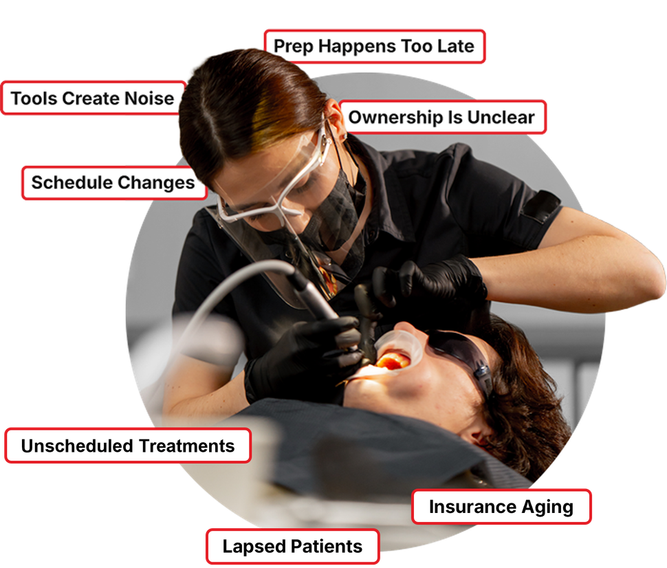 Not another tool. Not more documentation. An execution system built for real dental days.